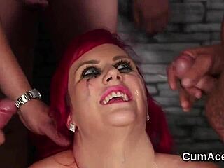 Unusual Centerfold Sucks Blowbang Cocks for Explosive Facial Jizz Cumshot Drenching