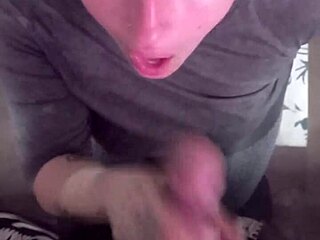 Kiimainen tyttökaveri imee ison kalun suuhun täyteen spermaa