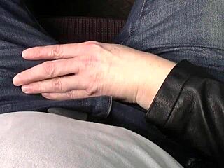 Girlfriend strokes handcuffed cock in car till cumshot
