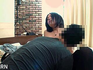 an asian amateur with big ass engages in rough interracial sex with black monster cock deepthroat