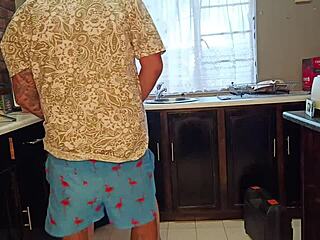 Lange Beine Stieftochter beugt sich für versauten Stiefvater-Fick neben ahnungsloser Stiefmutter