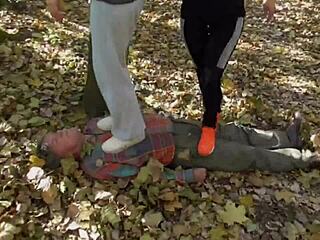 Wanita submissive dihukum dengan jilat intens oleh mistress lesbian di bondage