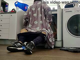 Kurba dobi globoko grlo jebano v javni trgovini, medtem ko kupci gledajo v šoku