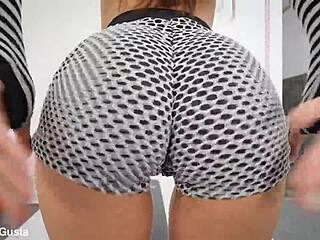 athletic latina's big ass shakes in thong shorts leggings workout