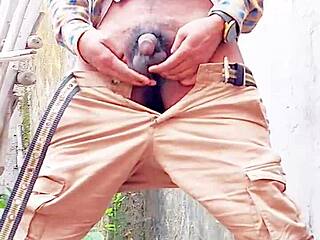small hairy black cock teases pisses outdoor indoor with huge clit reveal