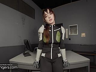 mina ashiro deep sucks ponytail brunette in vr kaiju cosplay