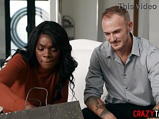 Yo, mate cette milf ébène à gros seins prendre une énorme bite blanche en cuisine !