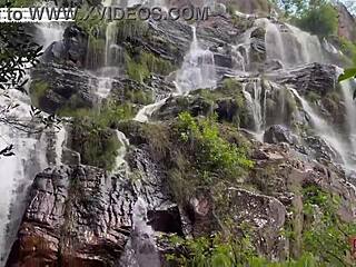 guy fucks juicy latina putinha's big ass pussy and swollen tits by the cascading waterfall