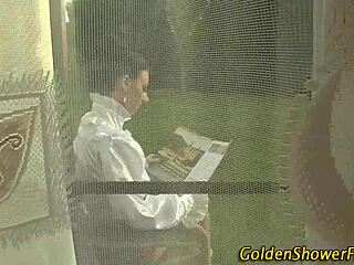 fetish lover drinks pee in hardcore golden shower scene with cumshot