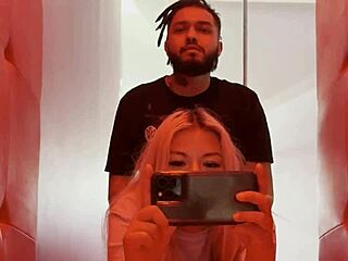blonde flashes tits in hotel stairwell before fucking