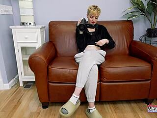 Blonde Aiden Starr stöhnt, während BBC sie auf dem Sofa durchhämmert