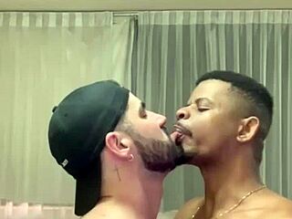 堕落した女が彼のチンポを吸ってメッシーな顔射、うーん、メッシーなの!