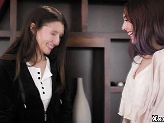 lauren phillips shows teen neighbor maya woulfe and lily larimar how to lick pussy right first time