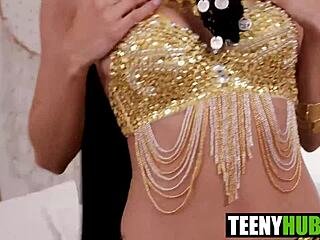 This sexy Indian babe teased with erotic belly dancing in a solo nude show.