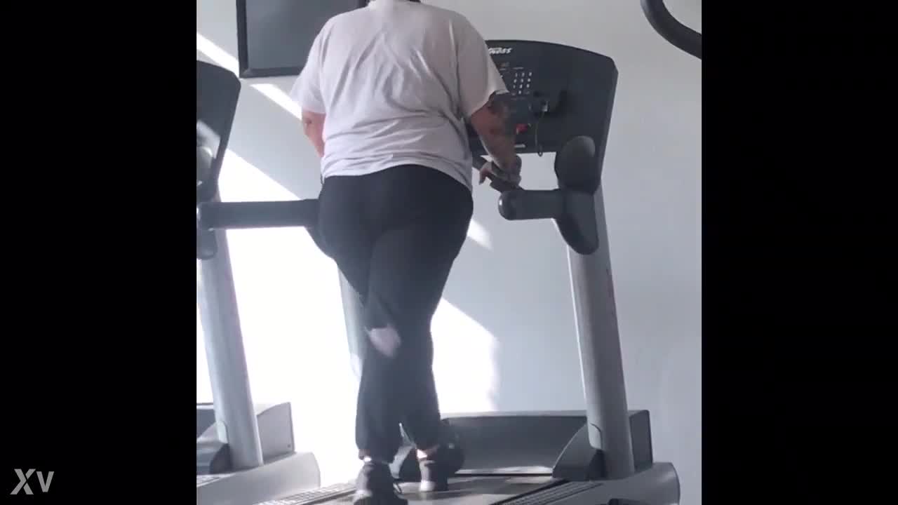 Big booty girl works out on the treadmill